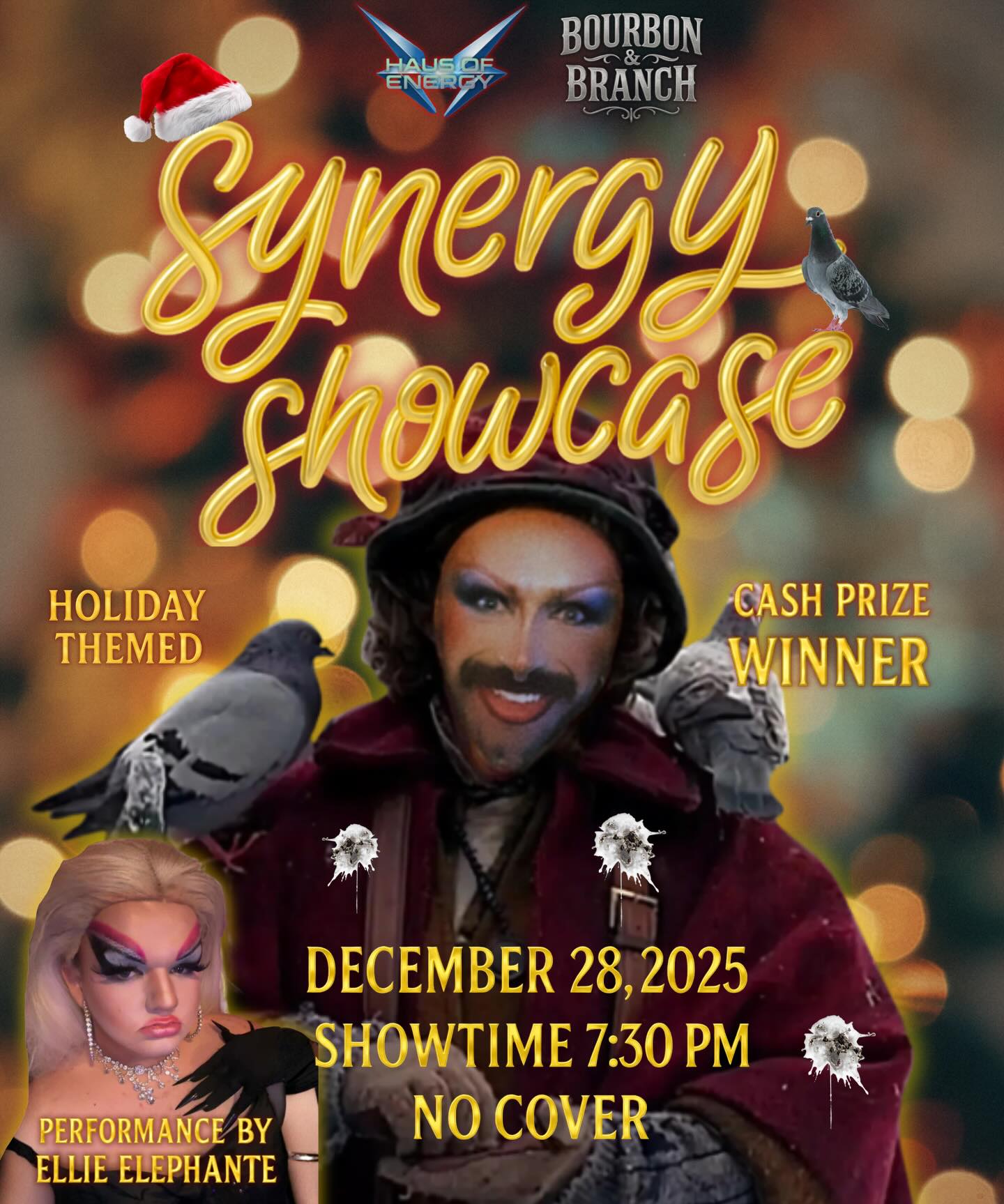 Synergy Showcase is a high-energy, holiday-themed drag and performance night celebrating queer artistry, movement, and collaboration. The evening features a dynamic lineup of drag performers from across the Philadelphia creative community. Audience votes for a top 2. Top 2 lip-sync for a cash prize ($50). Produced by Haus of Energy Events!