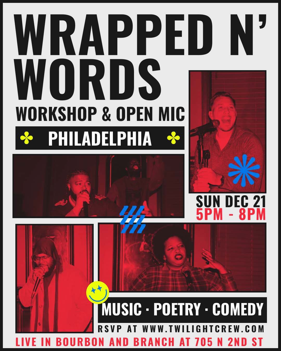 Join The Twilight Crew for a creative workshop and open mic designed for writers, musicians, comedians, and anyone looking to express themselves. Participants will create poems, songs, and jokes in a supportive, collaborative environment, followed by a networking session to meet other creatives. No experience is required. This event is beginner-friendly and open to all levels – from first-timers to seasoned performers.